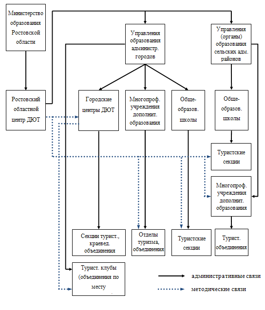 Рис. Административные и методические связи организаций и учреждений детско-юношеского туризма Ростовской области