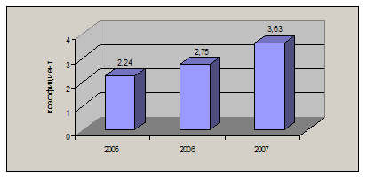 О повышении уровня жизни населения района в последние годы дает также представление график <Соотношение денежных доходов и прожиточного минимума жителей> из Индикативного плана социально-экономического развития Павловского района, утвержденного Советом муниципального образования в январе 2008 г. (рис. 1). За два года коэффициент, отражающий рост заработной платы по сравнению с прожиточным минимумом, вырос в 1,6 раза.